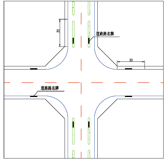 (3)支路的路名牌为单侧设置。